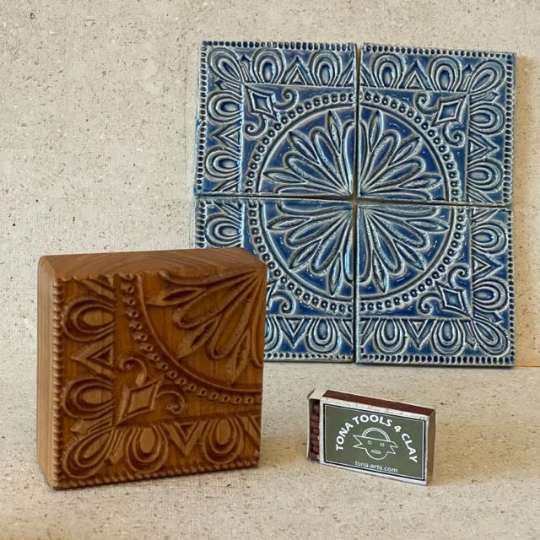 Alle unsere Holzstempel und Hand-Roller sind tief aus Massivholz gefräst und haben abgeschrägte Stege. So lassen sie sich leicht von Ton lösen