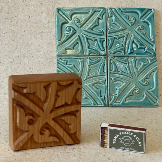Alle unsere Holzstempel und Hand-Roller sind tief aus Massivholz gefräst und haben abgeschrägte Stege. So lassen sie sich leicht von Ton lösen