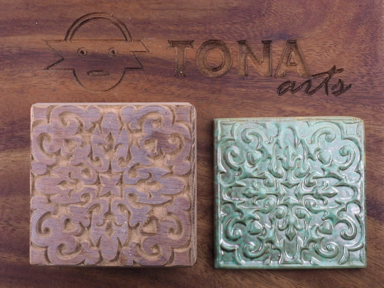 Nicht nur die eigenen Fliesen kann man damit schnell und einfach herstellen, sondern auch Blockdruck und Prägungen auf Papier, Pappe, Wachs und Stoff, sowie das Strukturieren von Keramikobjekten.
