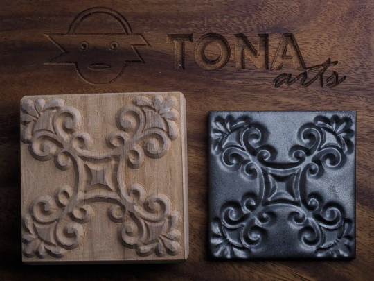 Nicht nur die eigenen Fliesen kann man damit schnell und einfach herstellen, sondern auch Blockdruck und Prägungen auf Papier, Pappe, Wachs und Stoff, sowie das Strukturieren von Keramikobjekten.