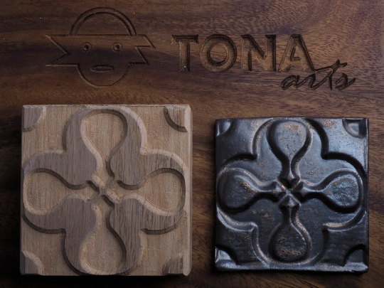 Nicht nur die eigenen Fliesen kann man damit schnell und einfach herstellen, sondern auch Blockdruck und Prägungen auf Papier, Pappe, Wachs und Stoff, sowie das Strukturieren von Keramikobjekten.