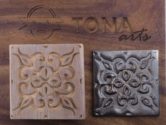 Nicht nur die eigenen Fliesen kann man damit schnell und einfach herstellen, sondern auch Blockdruck und Prägungen auf Papier, Pappe, Wachs und Stoff, sowie das Strukturieren von Keramikobjekten.