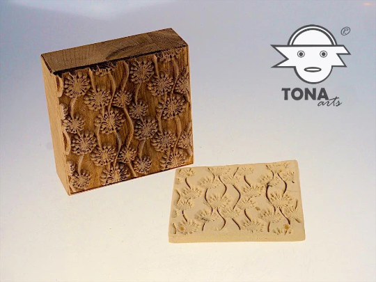 Nicht nur die eigenen Fliesen kann man damit schnell und einfach herstellen, sondern auch Blockdruck und Prägungen auf Papier, Pappe, Wachs und Stoff, sowie das Strukturieren von Keramikobjekten.