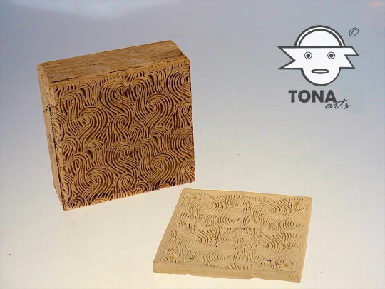 Nicht nur die eigenen Fliesen kann man damit schnell und einfach herstellen, sondern auch Blockdruck und Prägungen auf Papier, Pappe, Wachs und Stoff, sowie das Strukturieren von Keramikobjekten.
