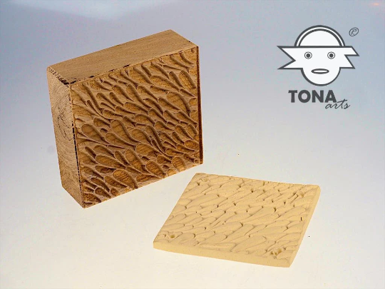 Nicht nur die eigenen Fliesen kann man damit schnell und einfach herstellen, sondern auch Blockdruck und Prägungen auf Papier, Pappe, Wachs und Stoff, sowie das Strukturieren von Keramikobjekten.
