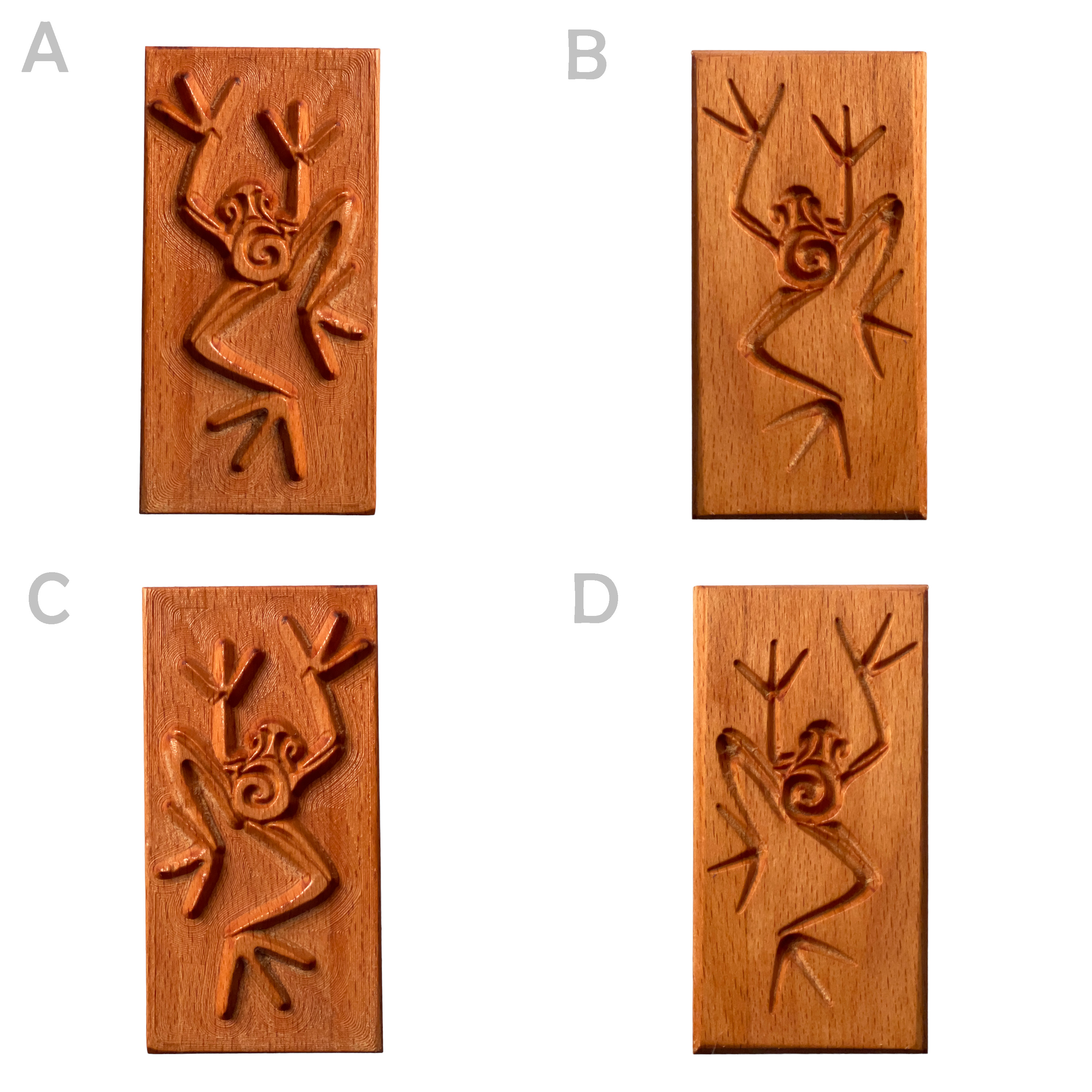 Alle unsere geschnitzten Holzstempel und Handroller sind tief gefräst und haben im Gegensatz zu gelaserten Stempeln und 3D-Druck-Plastikstempeln abgeschrägte Stege. So lassen sie sich leicht aus dem Ton lösen und das Druckbild ist deutlich plastischer und lebendiger.