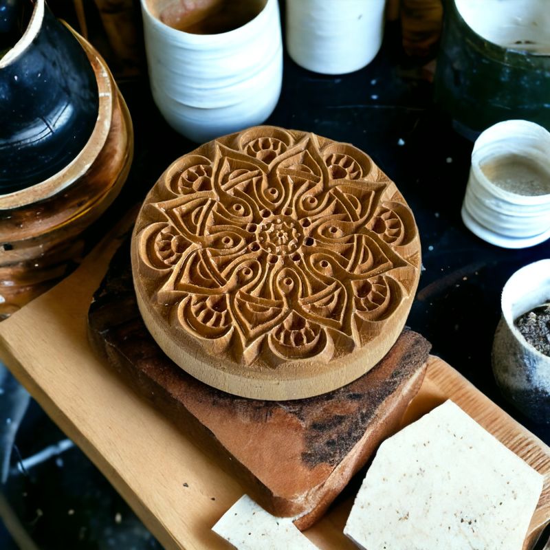 Unsere Mandala Stempel sind, im Gegensatz zu den vielfach angebotenen 3D Druck Stempeln aus Plastik, tief gefräst und haben abgeschrägte Stege. So lassen sie sich leicht von Ton lösen und die Prägungen sehen unglaublich plastisch aus.