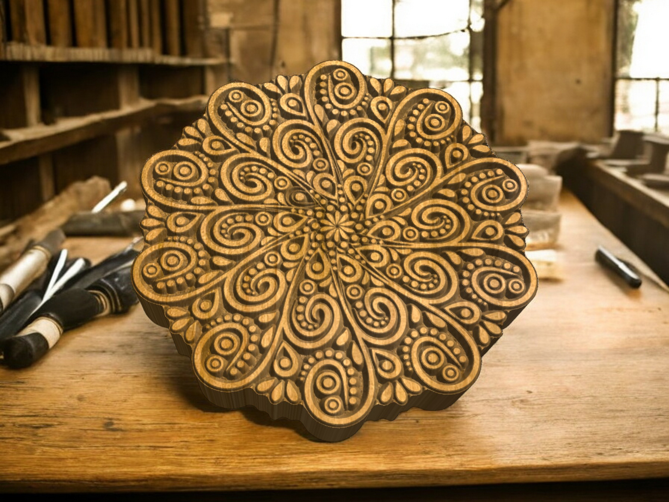 Unsere neuen handgefertigten Mandala-Stempel aus nachhaltigem Hartholz sind dank ihres innovativen Konturschnitts präzise und in 10 Größen erhältlich. Die tief gefrästen Designs mit abgeschrägten Stegen ermöglichen mühelos plastische und detailreiche Prägungen. Hergestellt in Deutschland, perfekt für kreative Projekte wie Teller, Fliesen oder Schüsseln.
