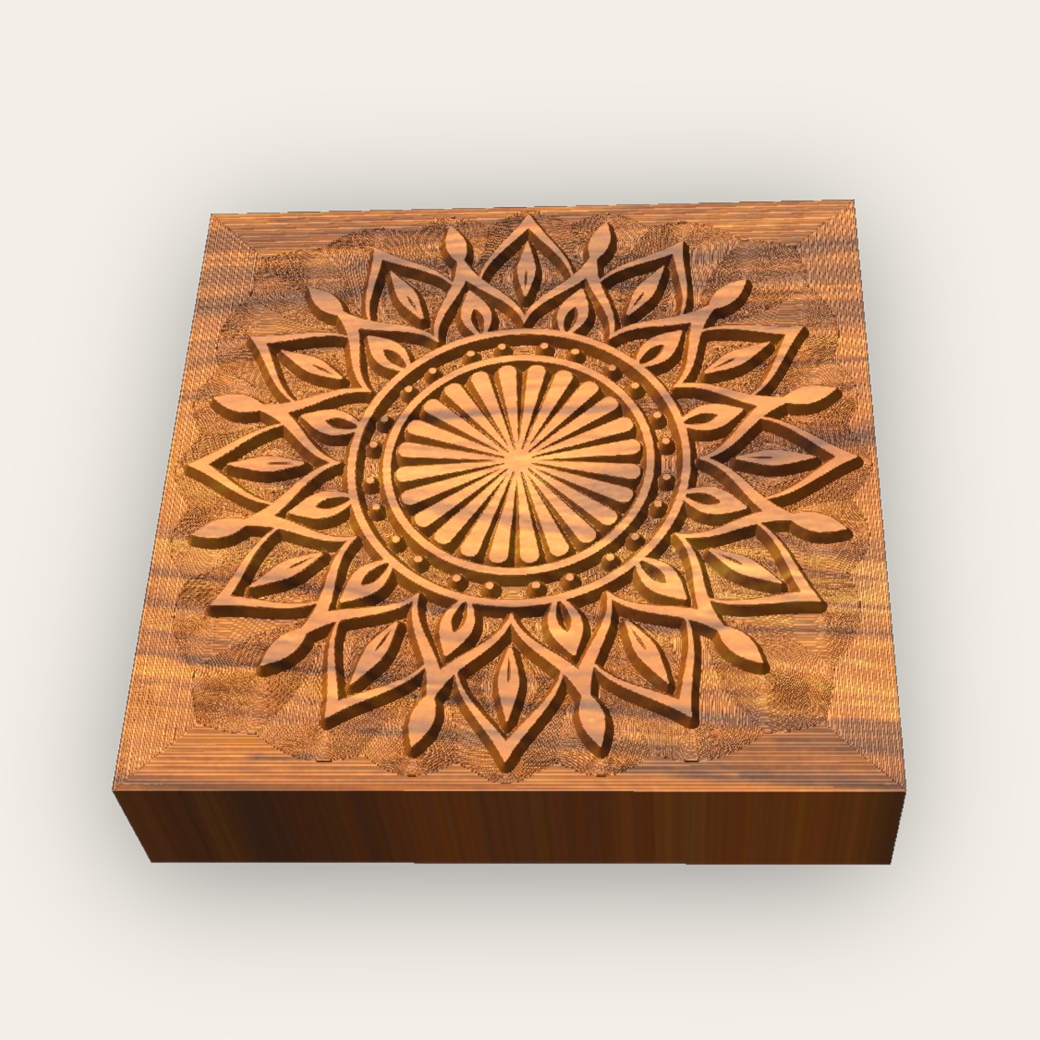 Unsere Mandala Stempel sind, im Gegensatz zu den vielfach angebotenen 3D Druck Stempeln aus Plastik, tief gefräst und haben abgeschrägte Stege. So lassen sie sich leicht von Ton lösen und die Prägungen sehen unglaublich plastisch aus.