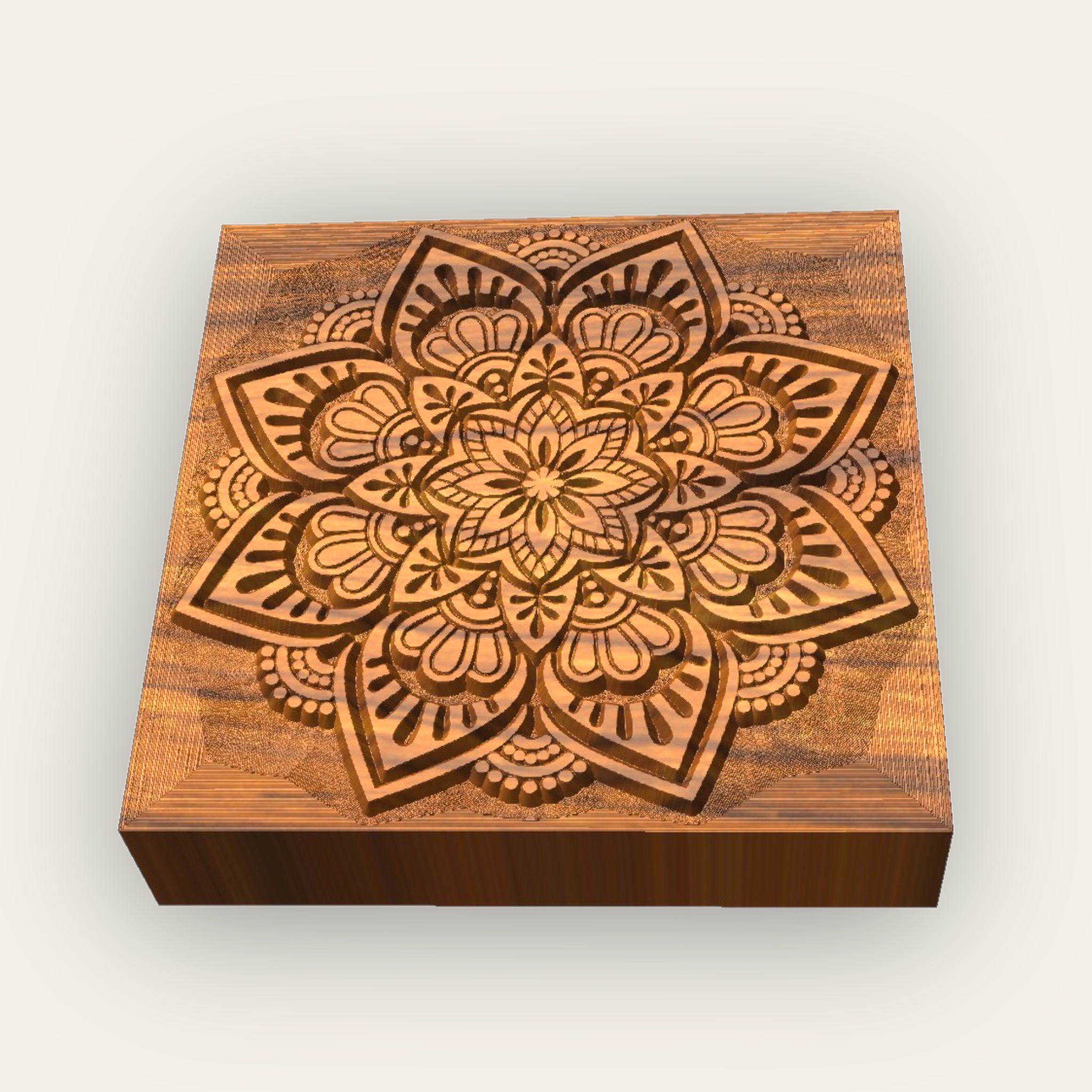 Unsere Mandala Stempel sind, im Gegensatz zu den vielfach angebotenen 3D Druck Stempeln aus Plastik, tief gefräst und haben abgeschrägte Stege. So lassen sie sich leicht von Ton lösen und die Prägungen sehen unglaublich plastisch aus.