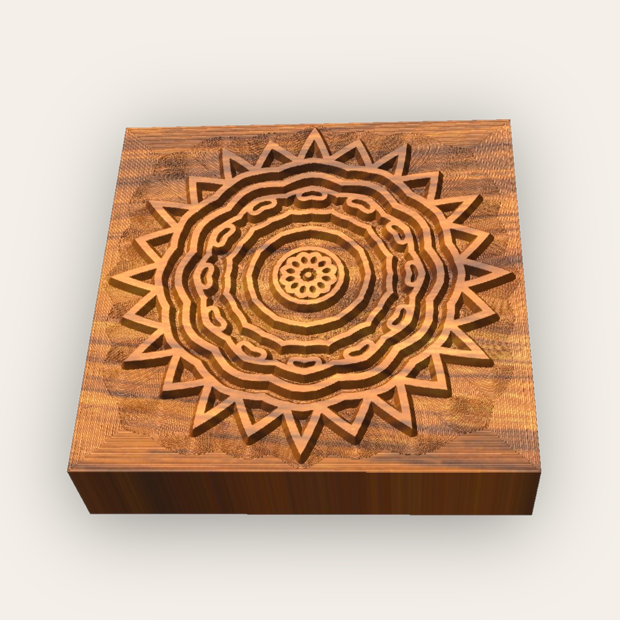 Unsere Mandala Stempel sind, im Gegensatz zu den vielfach angebotenen 3D Druck Stempeln aus Plastik, tief gefräst und haben abgeschrägte Stege. So lassen sie sich leicht von Ton lösen und die Prägungen sehen unglaublich plastisch aus.