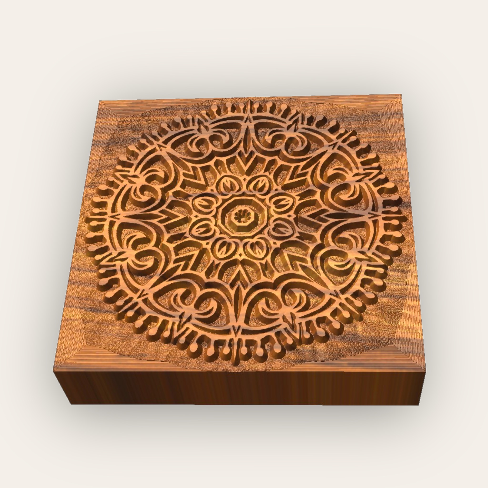 Unsere Mandala Stempel sind, im Gegensatz zu den vielfach angebotenen 3D Druck Stempeln aus Plastik, tief gefräst und haben abgeschrägte Stege. So lassen sie sich leicht von Ton lösen und die Prägungen sehen unglaublich plastisch aus.