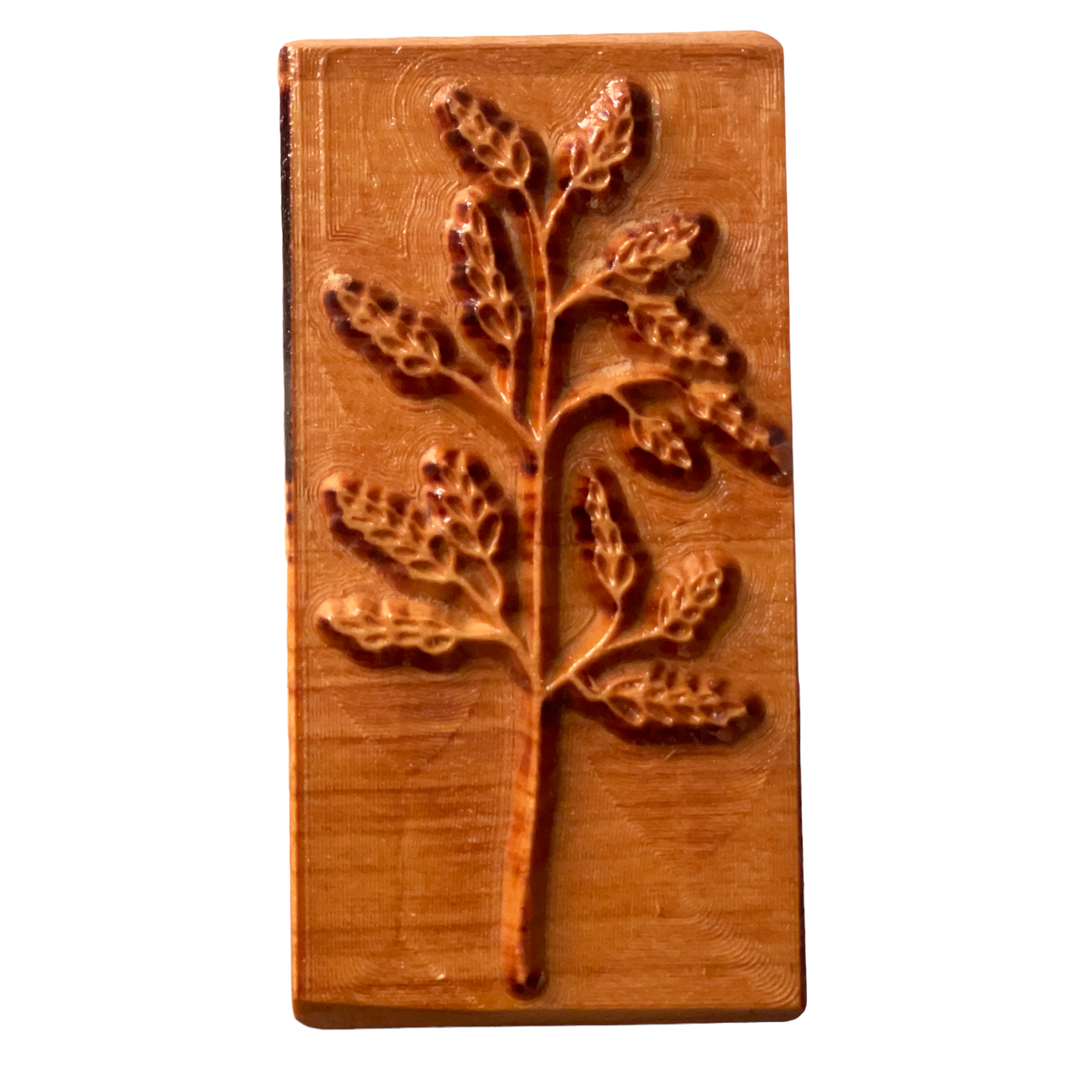 Alle unsere geschnitzten Holzstempel und Handroller sind tief gefräst und haben im Gegensatz zu gelaserten Stempeln und 3D-Druck-Plastikstempeln abgeschrägte Stege. So lassen sie sich leicht aus dem Ton lösen und das Druckbild ist deutlich plastischer und lebendiger.