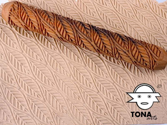 TONA Handroller eignen sich auch hervorragend für ausgerollte Tonplatten. Sie rollen die TON-Rolle einfach mit der Hand über den Ton, um ein schönes Muster zu erzeugen und fügen dann mit den ausgeschnitten Tontstücken Ihre Keramik zusammen.