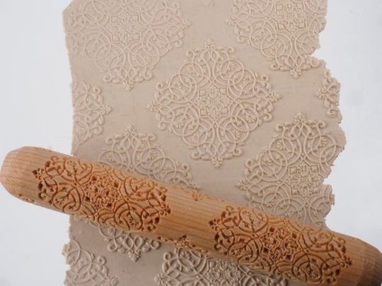 TONA Handroller  eignen sich auch hervorragend für ausgerollte Tonplatten. Sie rollen die TON-Rolle einfach mit der Hand über den Ton, um ein schönes Muster zu erzeugen und fügen dann mit den ausgeschnitten Tontstücken Ihre Keramik zusammen.