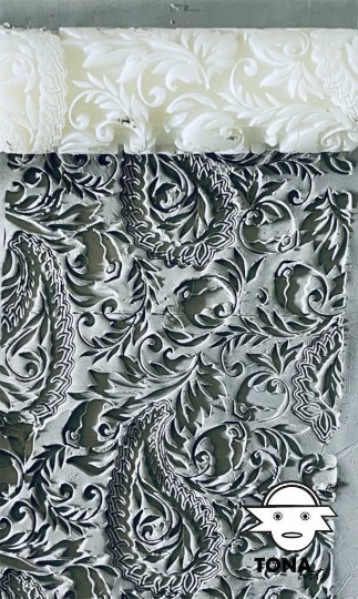 Der Unterschied zu den Rollern aus Holz ist, ausser dem Material, dass die Kunststoffroller, im Verhältniss zur Größe, eine unglaublich feine Struktur wiedergeben können. Allerdings mit dem Nachteil, dass sich diese Strukturen beim Prägen mit Material zusetzen können. Die Stege bei dieser Art Rollern sind senkrecht und reißen schneller beim Rollen Material mit.