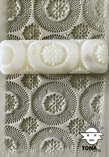 Der Unterschied zu den Rollern aus Holz ist, ausser dem Material, dass die Kunststoffroller, im Verhältniss zur Größe, eine unglaublich feine Struktur wiedergeben können. Allerdings mit dem Nachteil, dass sich diese Strukturen beim Prägen mit Material zusetzen können. Die Stege bei dieser Art Rollern sind senkrecht und reißen schneller beim Rollen Material mit.