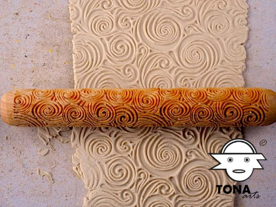 TONA Handroller in verschiedenen Größen aus tief gefrästen Hartholz. labyrinth Muster